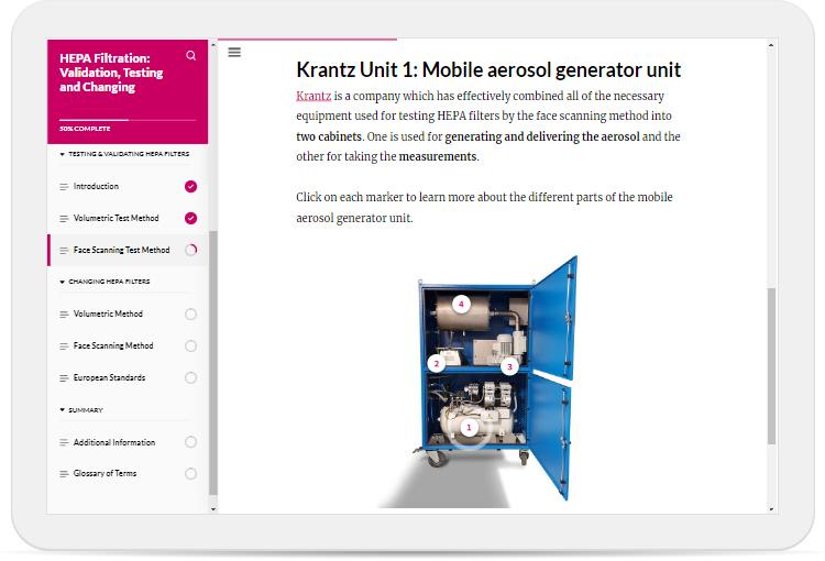 The course is designed to provide an understanding of HEPA filters, from their background and grading, to testing and handling, finishing on changing and disposal. Covering both the volumetric and face-scanning methods of testing it refers to standards EN 1822-1 and BS EN ISO 14644-3:2019.