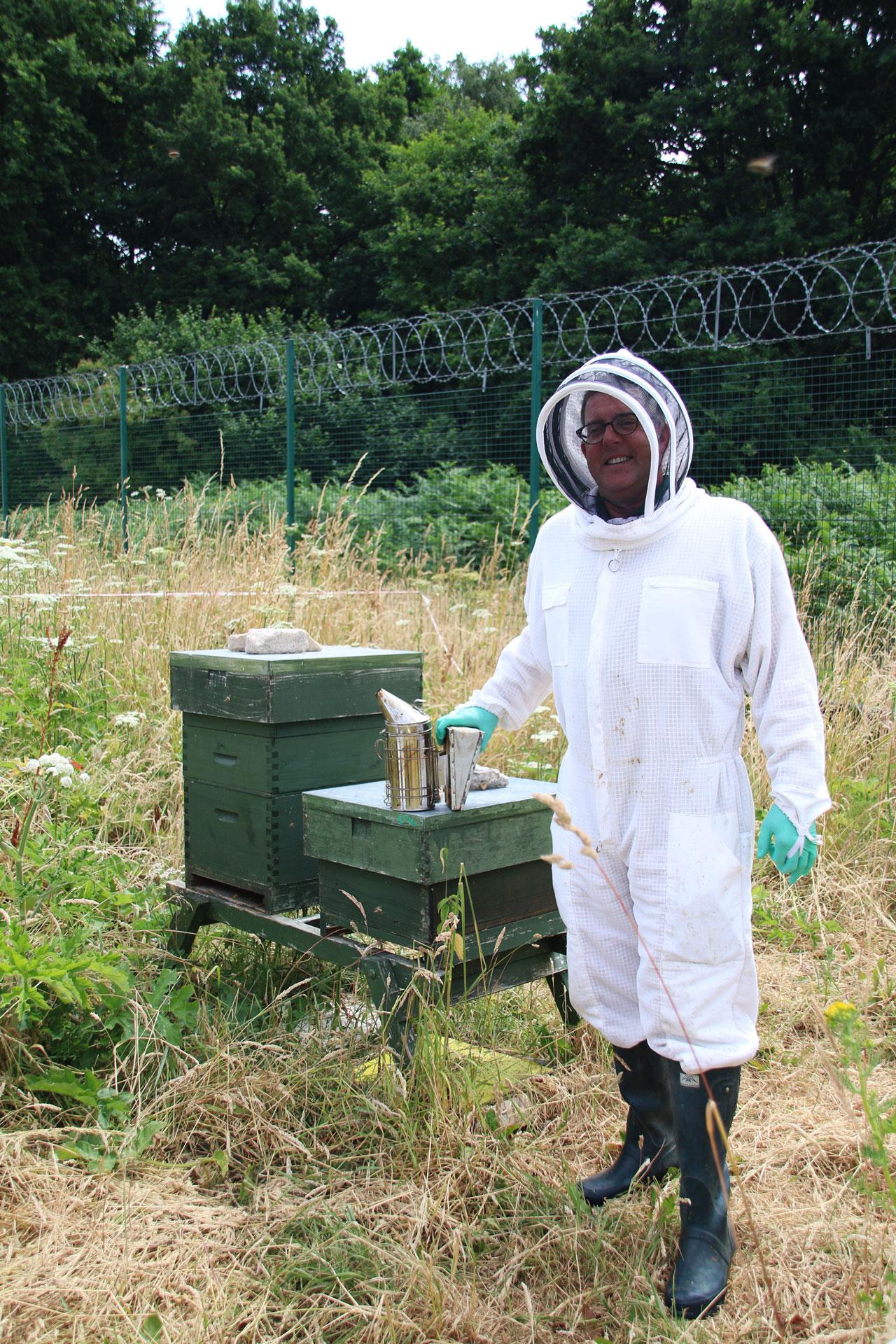 Mark Fife became hooked on beekeeping more than 14 years ago after learning about it from a former research assistant. Fife approaches it like a science, keeping a spreadsheet where he logs everything he sees at the hives each time he visits. Looking to pass on his own enthusiasm to other Institute members he established the informal ‘Pirbright Beekeeper’s Club’ thinking he would get about four volunteers. The current membership stands at 38 people, a testament to the growing interest in beekeeping and environmental conservation. “Beekeeping on site is an environmentally responsible thing to do” said Mark Fife.